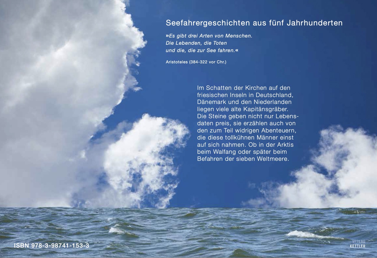 Annet van der Voort hat mit ihrer faszinierenden fotografischen Sichtweise 27 alten Seefahrergrabsteinen wieder Leben eingehaucht. So kommen die Geschichten einiger der verstorbenen Seefahrer der Inseln Rømø, Sylt, Föhr, Amrum, Helgoland, Norderney, Ameland und Terschelling noch mal ganz anders zur Geltung.