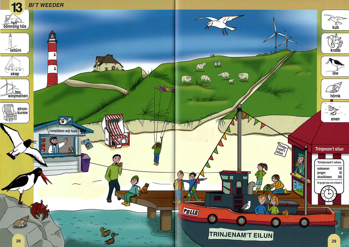 Paul und Emma leben auf der Nordseeinsel Amrum. In 20 Szenen aus ihrem Alltag nähern sich die Kinder auf spielerische Weise der Minderheitensprache Öömrang: der erste Schultag, Einkaufen im Supermarkt, Urlaub am Meer, Sport und viele Erlebnisse mehr. Immer mit dabei: der Hund Tofel und eine Katze, die noch keinen Namen hat. Paul und Emma regen dazu an, Öömrang kennenzulernen und anzuwenden. Das kann im Rahmen eines systematischen Spracherwerbsunterrichts geschehen oder beim selbständigen Sprachenlernen mit Freunden und in der Familie. Ein spannendes Bilderbuch auf öömrang für Lerngruppen und für Zuhause. Föl spoos mä öömrang!